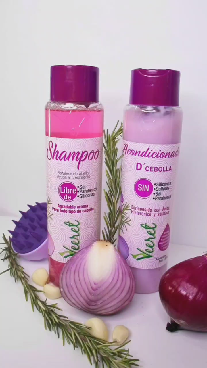 SHAMPOO Y ACONDICIONADOR Anti-caida con CEBOLLA, AJO Y ROMERO SIN SAL, SIN PARABENOS Y SIN SILICONAS ARTIFICIALES.